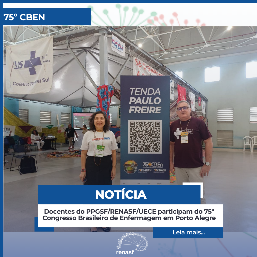 A docente Rocineide Ferreira da Silva e o vice-coordenador José Maria Ximenes Guimarães, do Programa de Pós-Graduação em Saúde da Família (PPGSF/RENASF/UECE), participam entre os dias 23 e 26 de novembro de 2025 do 75º Congresso Brasileiro de Enfermagem (CBEn), um dos mais importantes e tradicionais encontros científicos da área da saúde no Brasil. O evento acontece no Centro de Eventos da Pontifícia Universidade Católica do Rio Grande do Sul (PUCRS), em Porto Alegre, reunindo profissionais, pesquisadores, estudantes e lideranças da Enfermagem de todo o país.