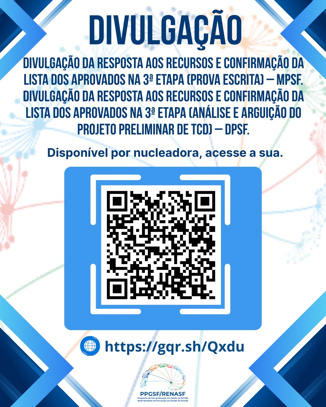 Fique atento(a) às próximas etapas e acompanhe todas as atualizações pelos canais oficiais do PPGSF/RENASF.