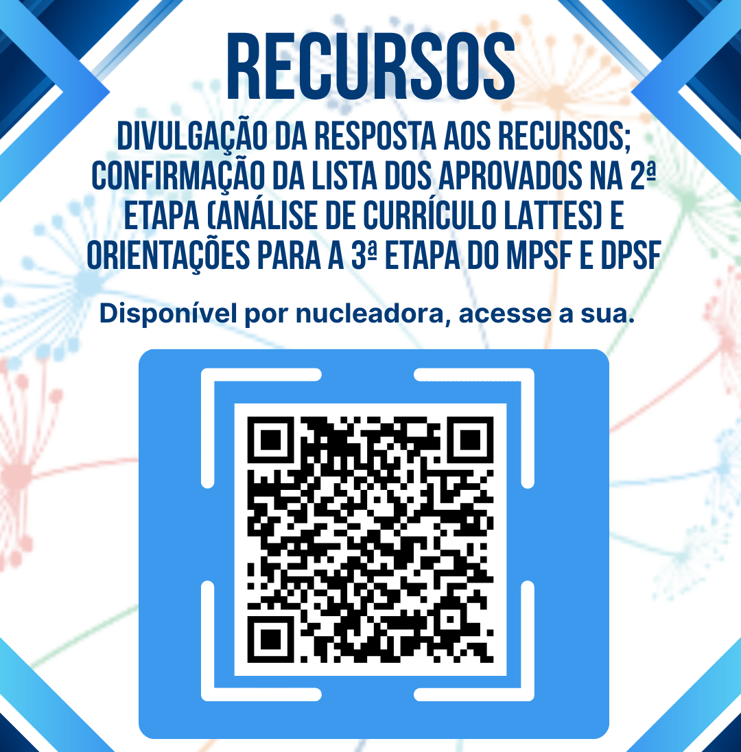 Fique atento(a) às próximas etapas e acompanhe todas as atualizações pelos canais oficiais do PPGSF/RENASF.